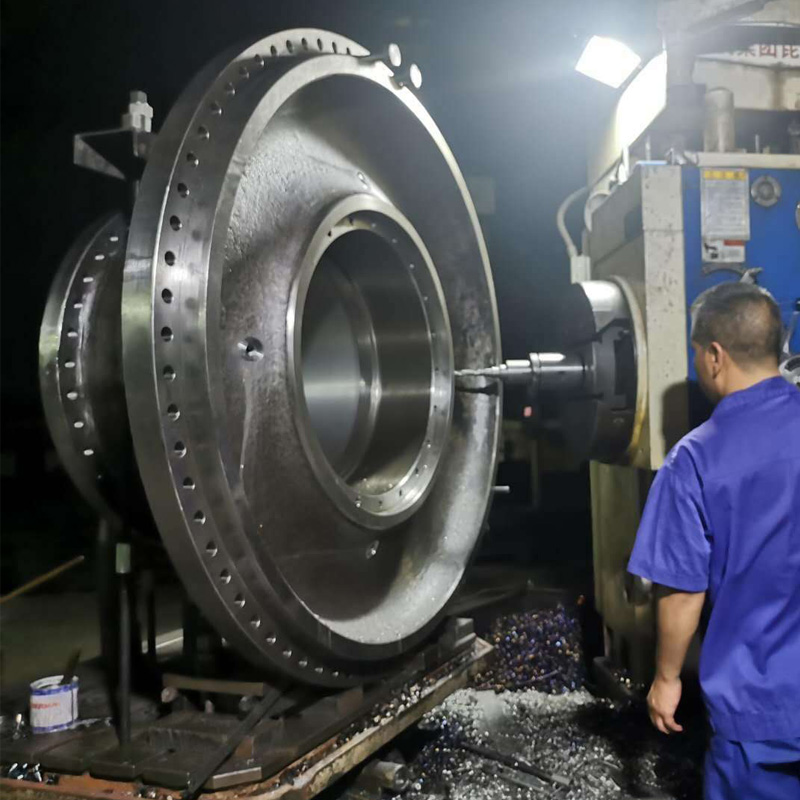 2、粗車(chē)-----------10米臥式車(chē)床粗車(chē)削,單邊緣留有3-5mm的余量;